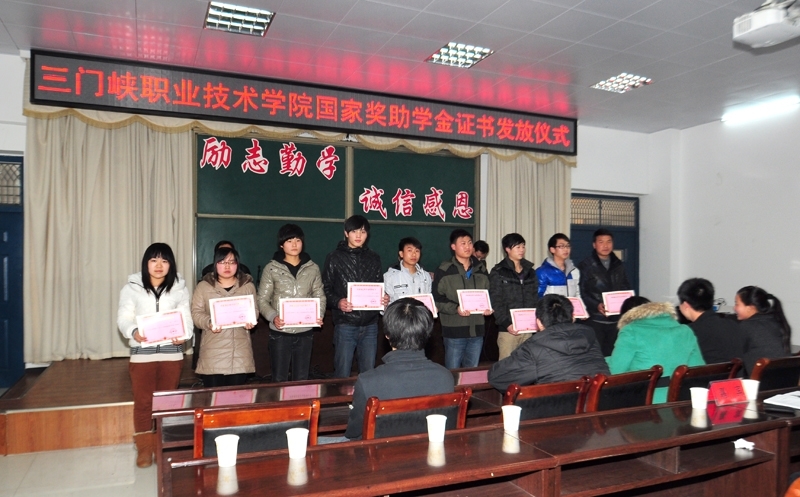 为了加强学风建设,激励同学们勤奋学习,3月22日下午在1106会议室隆重举行2011-2012学年度奖助学金证书发放仪式。根据河南省教育厅关于高校2011-2012学年度国家奖助学金发放工作安排意见(教资助【2011】651号),我院按照省教育厅的要求,本着公平、公正、公开的原则,通过系部评选、系部初审、院学生资助管理中心审核、经学院国家奖助学金领导小组审批,最后报请河南省教育厅批复,我院共有13名同学获得国家奖学金,445名同学获得国家励志奖学金,2790名同学获得国家助学金。