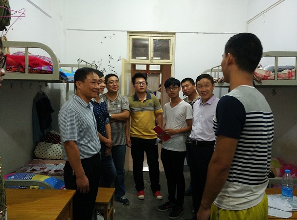 9月6日,校长吴勇军在副校长马旭东、党政办、教务处、学生处等相关人员的陪同下到新生宿舍进行走访探望。
