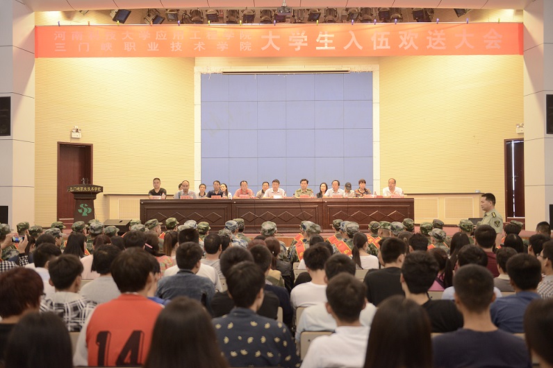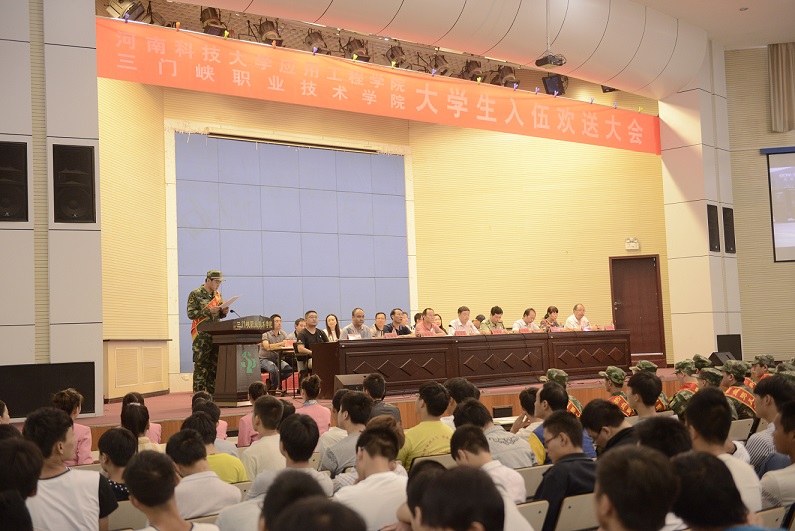 9月11日上午,我校2015年大学生入伍欢送大会在学术报告厅隆重召开。副校长马旭东、湖滨区武装部政委王秀良、学校武装部部长韩亚非、学工部部长黄世谋、各院部党总支书记参加了会议。会议由韩亚非主持。