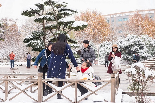 校园冬景之学子嬉戏