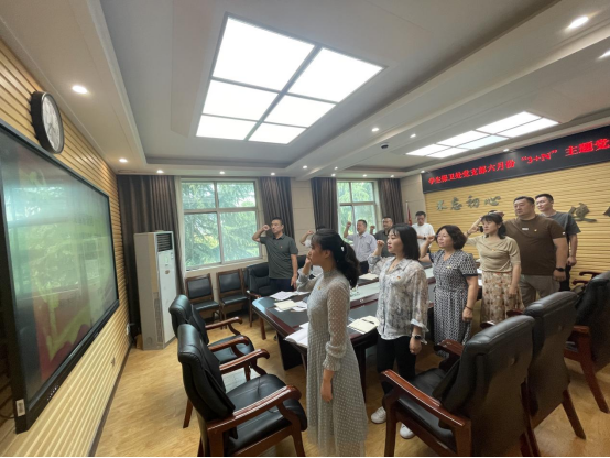 随后,学生保卫处党支部宣传委员张涛涛同志带领大家重温入党誓词,党员们高举右拳庄严宣誓,重温入党誓词,在铿锵的誓言中,党员们的初心受到洗礼,理想信念愈加坚定。