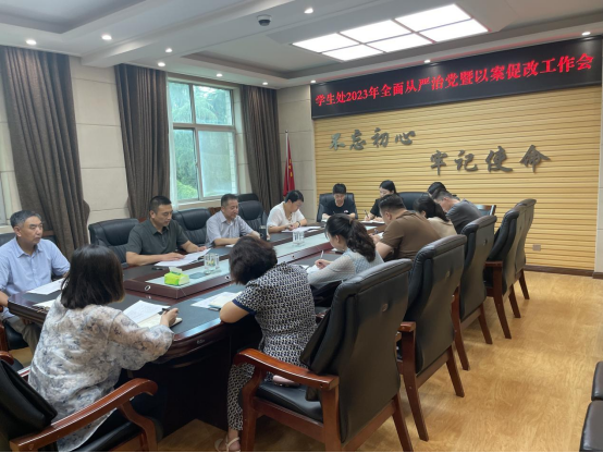 6月27日下午,学生处2023年全面从严治党暨以案促改工作会在天鹅湖校区308会议室召开。学生处全体人员参加会议。学工部部长、学生处处长翟艳辉主持会议并讲话。