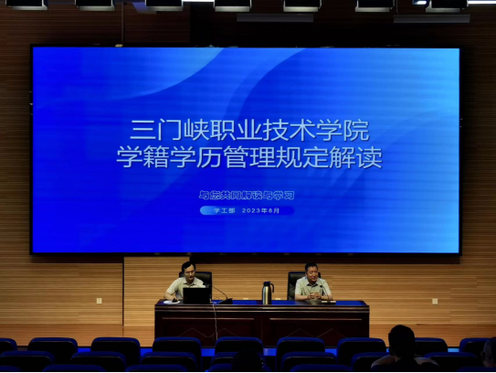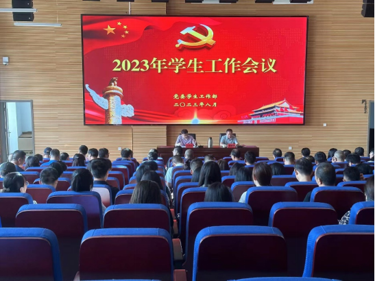 8月30日,我校在41101学术报告厅召开2023年学生工作会议,总结上一学年学生工作,全面安排部署下一学年学生工作,并对辅导员开展业务能力素质提升培训。党委委员、副院长马旭东出席会议并作报告。党政办公室、组织部、宣传和统战部、教务处、总务处、马克思主义学院负责人,各院部书记、院长(主任)、分管学生工作副院长(主任)、学生管理秘书、团总支书记、全体辅导员及学生处、团委、招生与就业办公室、保卫处全体人员参加会议。会议由学工部部长、学生处处长翟艳辉主持。