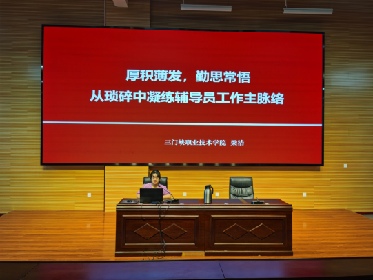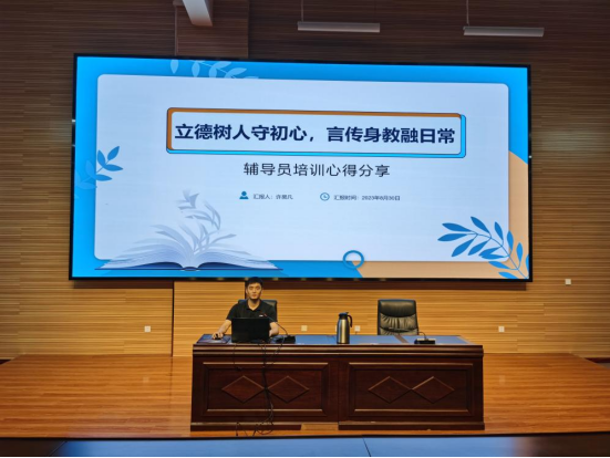 在辅导员开展业务能力素质提升培训中,学生处田伟伟老师和陈晓霞老师分别为辅导员们进行学籍学历管理规定和学生资助政策解读,2023年参加河南省辅导员培训的信息传媒学院许昊凡老师和医护学院梁洁老师分别以《立德树人守初心,言传身教融日常》和《厚积薄发,勤思常悟,从琐碎中凝练辅导员工作主脉络》为题,分享了他们的培训内容和辅导员工作经验。
