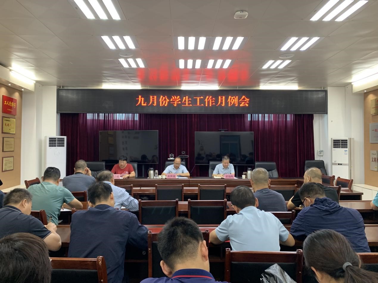 9月18日上午,学生处在六号综合楼荣誉室召开九月份学生工作月例会。党委委员、副院长黄世谋出席会议并讲话。各院部主管学生工作副院长、学生科长和学生处全体人员参加会议。会议由学工部部长、学生处处长翟艳辉主持。