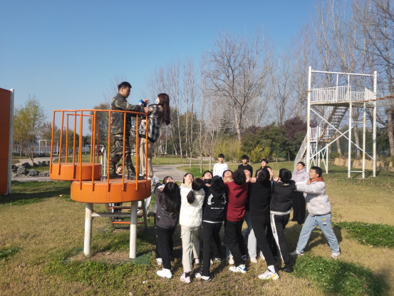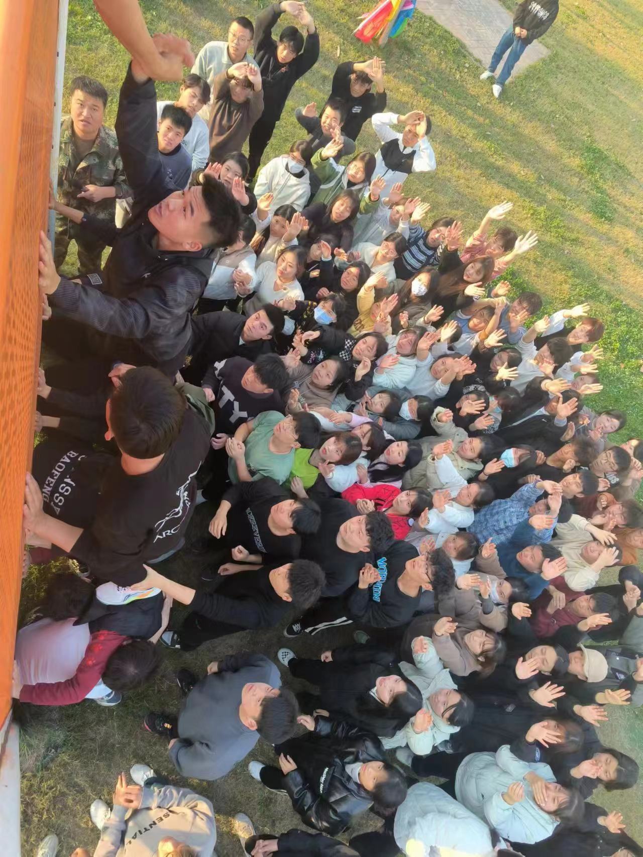 本次素质拓展训练旨在通过团建活动针对性地提高自管会成员的团队意识。训练过程中,全体学员被分成五队,并各自确定队旗、口号、队歌。在拓展师的带领下,各队队员依靠个人拼搏和团队协作完成了“穿越电网”“信任背摔”“达芬奇密码”“急速六十秒”“盲人方阵”“杯子舞”“冰海沉船”“毕业墙”等一系列有针对性的训练项目。学员们亲身体验了挑战和超越自我、沟通和协作共赢、信任和换位思考、领导和合理组织等和工作息息相关的管理意识和艺术。活动过程中,所有学员积极参加、迎难而上、大胆挑战自我,队员之间相互鼓励、团结一致,群策群力,以前所未有的坚忍和顽强圆满完成了各项既定的目标和任务。