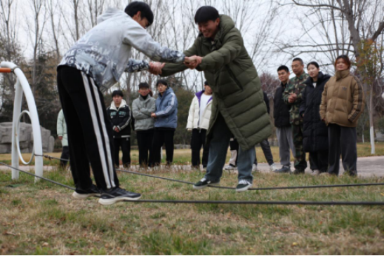 本次训练分为团体训练和分组训练,分别进行了穿越电网、盲人方阵、齐心合力、急速60秒、飞夺泸定桥 、信任背摔、毕业墙等7个项目。经过导师们悉心设计的各项任务,对培养参与者克服困难的毅力、健康的心理素质、积极进取的人生态度、敢于挑战自我极限的勇气和精诚合作的团队意识大有裨益。信任背摔项目中,一人在高处向后倒,队员们在后边手搭手,肩靠肩,挡住倒下来的伙伴,考验团队凝聚力,队员之间的相互信任力;盲人方针项目中,在蒙眼无方向的情况下将绳子围城方形,激发个人潜力,考验团队协作力......训练过程中,队员们团结一心,齐心协力,在导师的引导下出色完成各项任务。