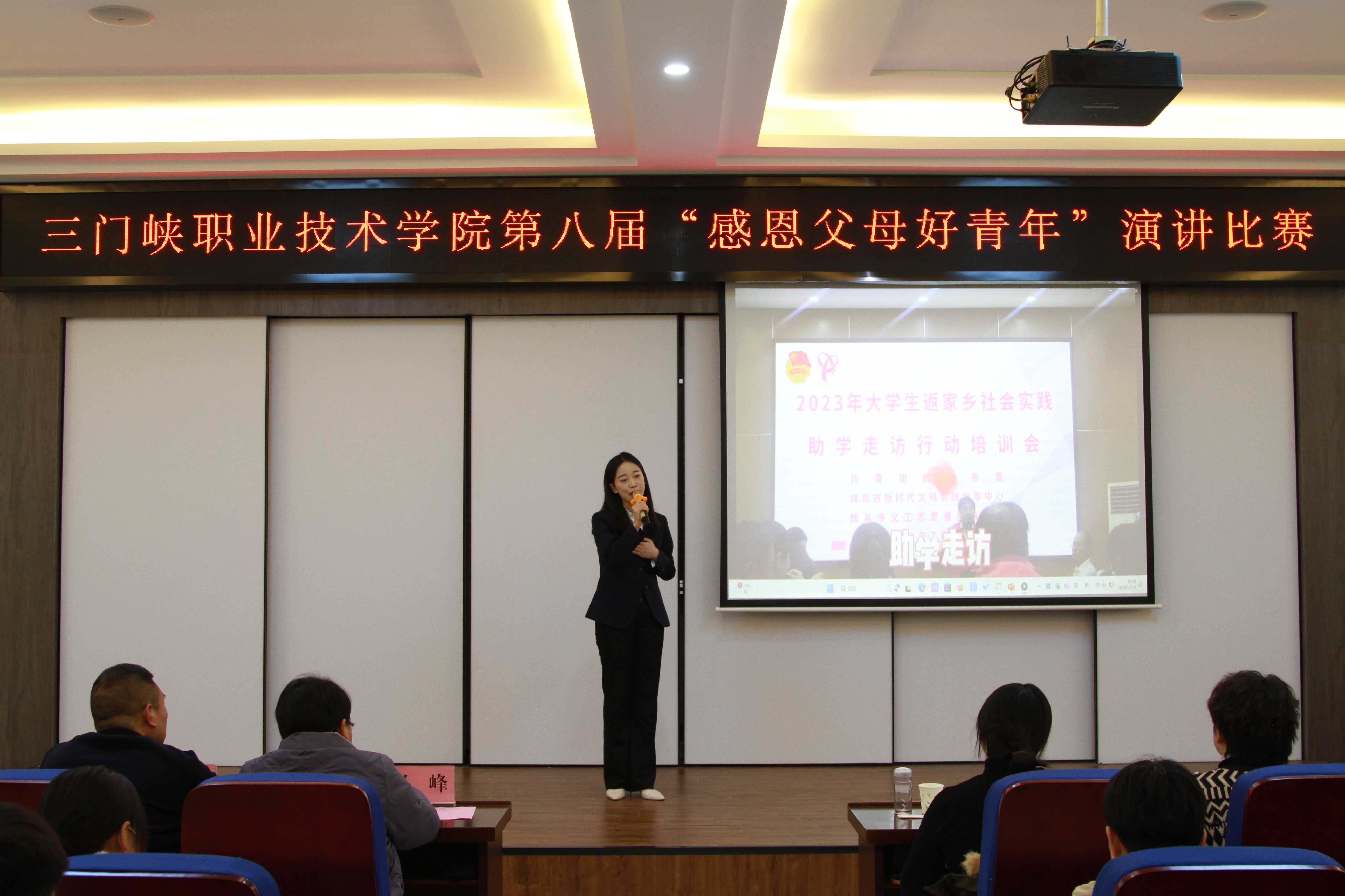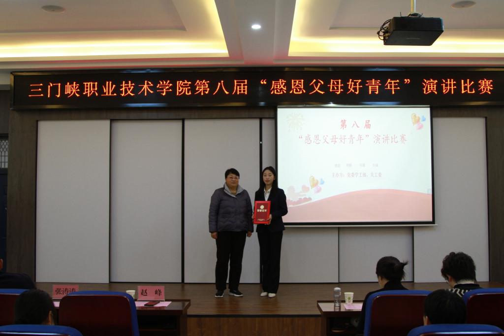 为弘扬中华优秀传统文化,传播孝老敬亲精神,进一步树立大学生的感恩意识与责任意识,加强大学生的感恩教育,12月14日下午,我校在天鹅湖校区1106会议室举办第八届“感恩父母好青年”演讲比赛。学生处学生资助管理中心主任赵峰、学生处张涛涛老师出席大赛。组织部张晗、宣传和统战部陈丽萍、师范学院李安飞、学生处王淑琴、董文霞应邀担任评委老师,教师和学生代表100余人观看比赛。