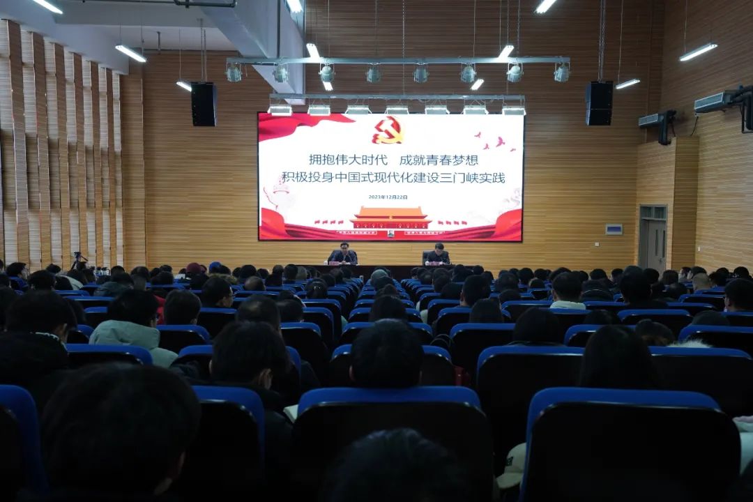 范付中指出,市委八届五次全会明确了现代化三门峡建设的“13561”工作布局,提出了做好“新” “河” “文” “山” “农”五篇大文章。2024年是中华人民共和国成立75周年,是实施“十四五”规划的关键一年,也是“13561”工作布局的突破成势之年。广大师生要深刻把握领会、积极主动融入,真正把三门峡当做成就事业的舞台、实现梦想的福地,积极投身科技创新、项目建设、产业转型、改革开放、绿色低碳、文旅融合、乡村振兴、城市建设、民生改善等三门峡经济社会发展主战场,切实在现代化三门峡建设的火热实践中绽放青春风采。