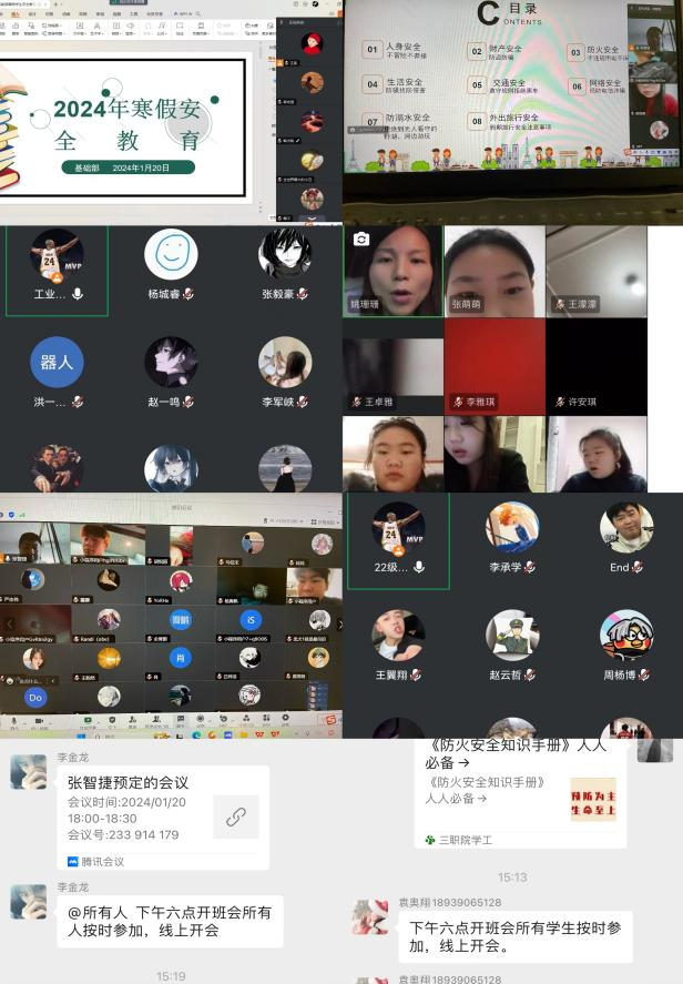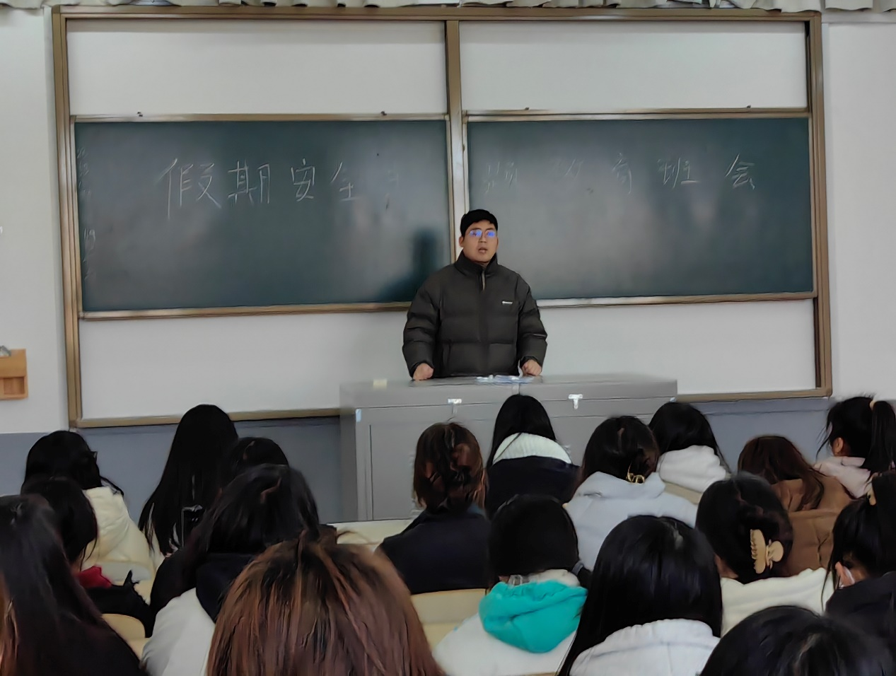 各院部按照学生处统一要求,组织召开全体同学安全稳定主题教育班会,一是要求学生在离校后关窗锁门,切断所有电源,做到“人走断电”,提高安全防范意识。二是要求学生如实报备假期去向,在假期期间保持与辅导员的随时联系和沟通,保证辅导员能第一时间联系到每一名学生。三是各院部为每一名学生发放假期安全告知书,告知其在假期期间的各项安全责任,提高安全警示。四是提醒学生离校返乡途中高度重视乘车安全,注意个人及财务安全,到家要及时向辅导员报备。五是学生处每天统计学生返校情况并上报学校领导,压实责任,确保每一名学生安全到家。六是积极开展假期安全教育,提醒学生假期中要注意自身安全,关注网络安全,提高网络诈骗防范意识。七是积极合理做好学业规划,过一个充实丰富的假期,要合理安排学习,自觉树立思想安全意识,时刻遵纪守法、规范日常及网络言行,自觉维护学校和大学生形象。