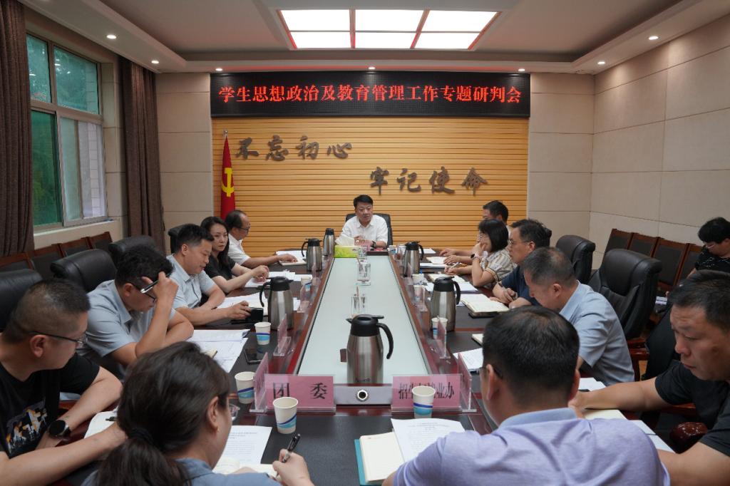 7月10日下午,学院在天鹅湖校区308会议室召开学生思想政治及教育管理工作专题研判会。党委书记杨彤出席会议并讲话。党委副书记高超杰,党委委员、组织部部长侯玲玲,党委委员、宣传和统战部部长王静宇,党委委员、总务处处长王卫星,教务处、学生处、人事处、财务处、保卫处、招生与就业办公室、团委负责人参加本次会议。会议由党委委员、副院长黄世谋主持。