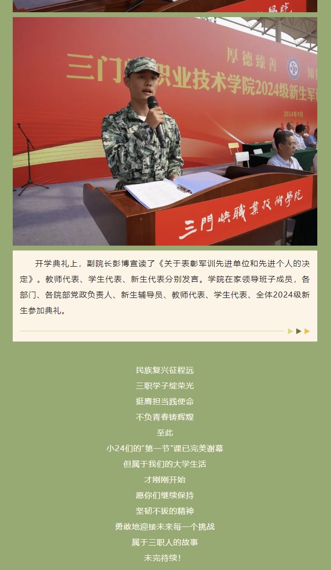 我校举行开学典礼+军训总结表彰
