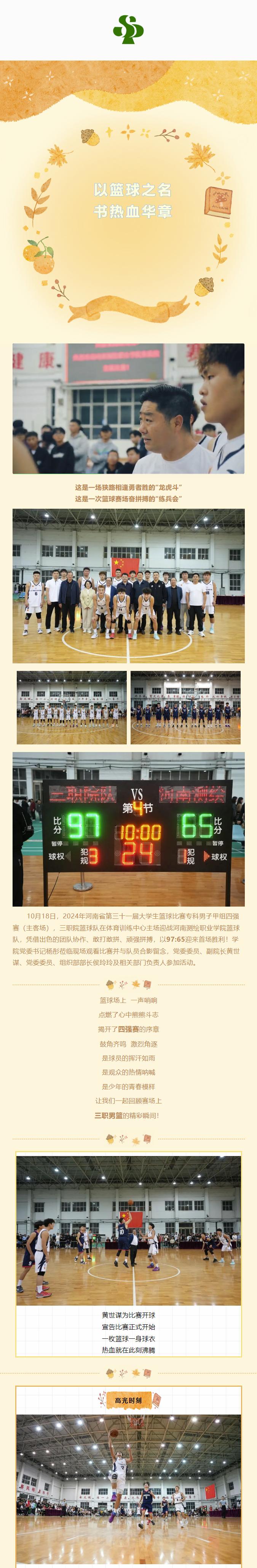 我院在河南省第三十一届大学生篮球比赛专科男子甲组四强赛(主客场)迎来首场胜利