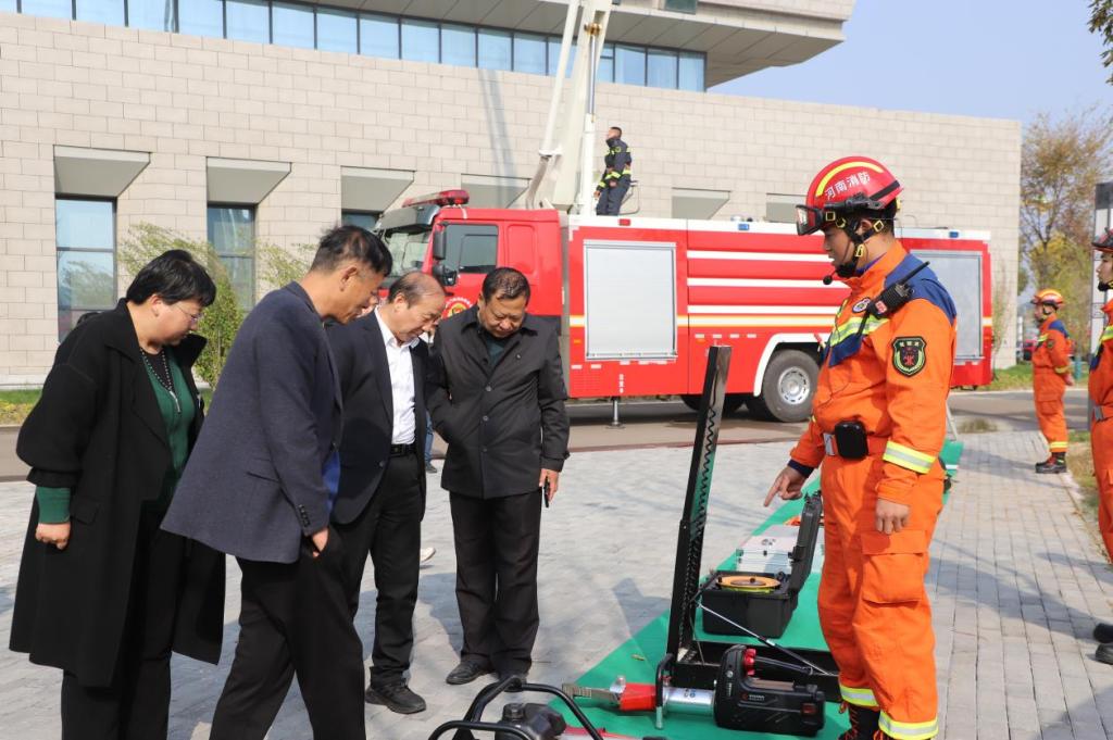 11月7日,在第33个全国消防日来临之际,为进一步加强学校安全工作,提高全体师生的安全防范意识,增强师生逃生、自救、互救技能,提高师生消防法律意识,夯实全面依法治国的青少年群众基础,学院关工委、学生处、保卫处,在我院联合开展“关爱明天、普法先行”消防法制安全教育活动。我校院长助理李启松、关工委副主任孙富平出席活动,保卫处负责人马彦、学生资助管理中心主任赵峰、保卫处消防科科长孙永生及各院部师生代表和部分商户代表1500余人参加了活动。