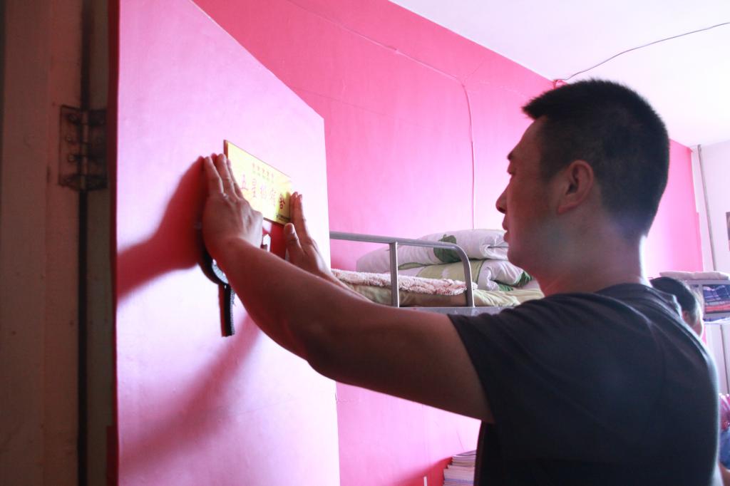 每到一处学生宿舍,张老师首先询问学生的学习和生活情况,查看学生的住宿环境,与学生亲切交谈,倾听学生对公寓管理的意见和建议,同时对这次在宿舍文化建设月中评选出的“五星级宿舍”表示赞许和鼓励。随后张老师和南老师及各院部学生科长分别为“五星级宿舍”进行了挂牌,并为获奖宿舍颁发了奖品。在仪式进行过程中,张老师鼓励受表彰的宿舍成员和学生干部能珍惜荣誉、再接再厉,再创佳绩,同时也希望其他同学要以先进为榜样,不断提高个人素养,为建设和谐宿舍,打造平安和谐校园做出应有的贡献。