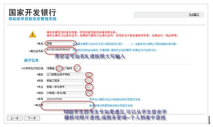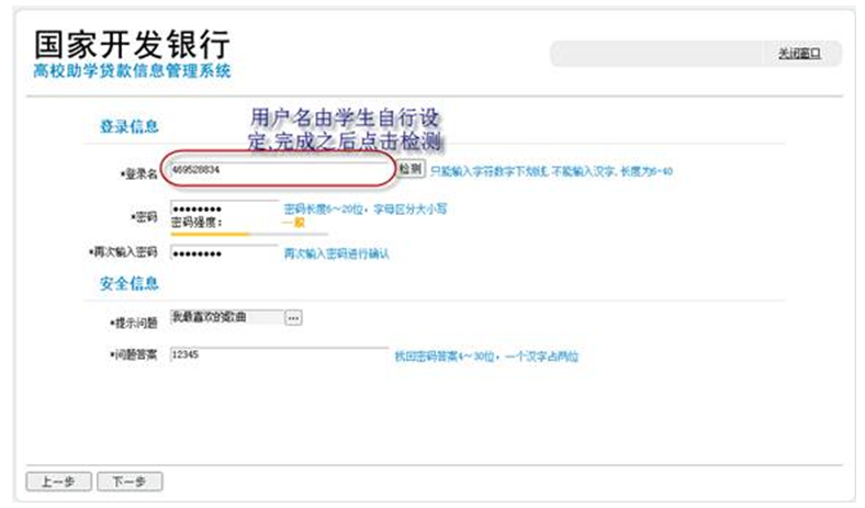 5.本页填写学生用户名,由学生自己设定,请要求学生自己保管好自己的用户名和密码。