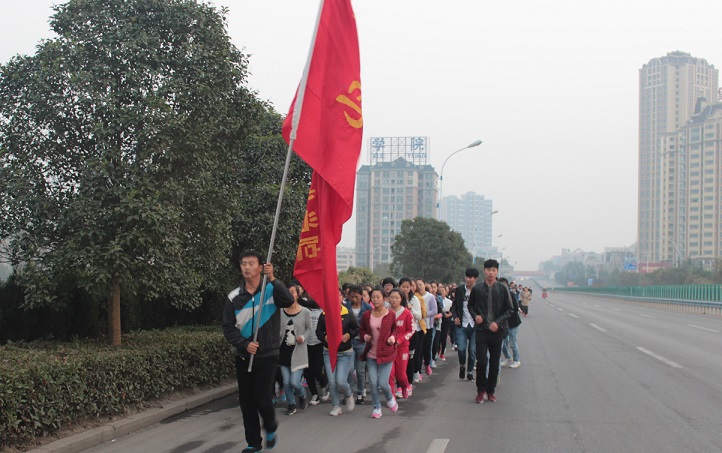 10月17日,校学生会全体学生干部在文化广场集合举行第一次长跑拉练活动,此次拉练的路程为学校东门路经天鹅湖至风景区。