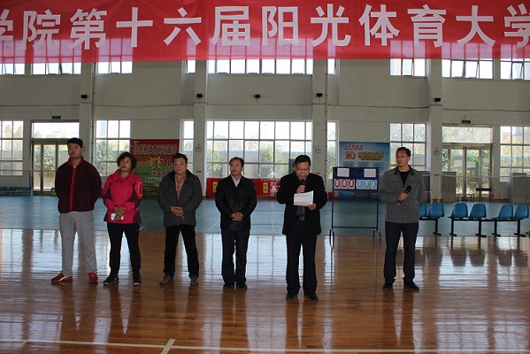 11月2日,我校第十六届阳光体育大学生篮球联赛在体育训练中心隆重开幕。学生处处长黄世谋、公共教学部党总支书记孙富平、学生处副处长曲扬、公共教学部体育教研室主任任云兰、篮球技术代表段全忠、裁判员代表李磊参加了开幕式。
