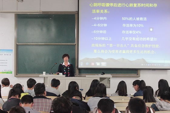 4月21日,校学生会在1107、1108教室分别举行“关爱生命,救在身边”急救知识讲座。医务室教师何雪梅、医护学院教师任聪芳主讲,校学生会主管教师黄涛及全体学生会干部参加了本次培训。