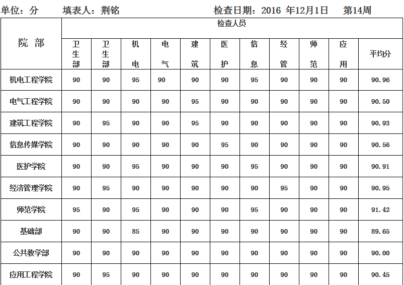 校园卫生∣2003网站太阳集团第十四周卫生区卫生检查评分表